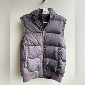 Stylish gray puffer vest. Perfect for layering.