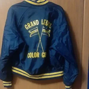 Vintage Blue Varsity Jacket with Yellow Stripes