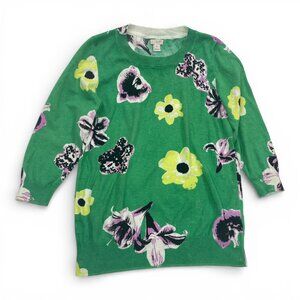 J. Crew Tippi Floral Green Cotton Lightweight Sweater Flowers Women's Medium