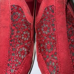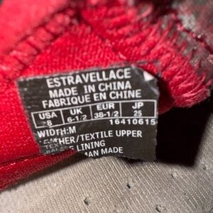 Dark red color suede & fabric uppers.