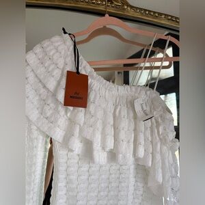 Missoni White Cold-shoulder Ruffled Crochet-knit Mini Dress