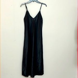 🌞 Vintage Long disco black frost silky like slip dress 100% polyester size S