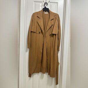 Stylish Calvin Klein trench coat. Features classic design and rich brown color. Ideal for versatile wear.
