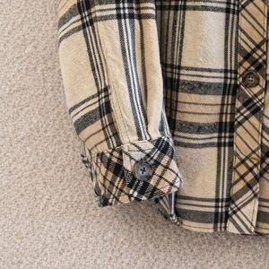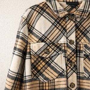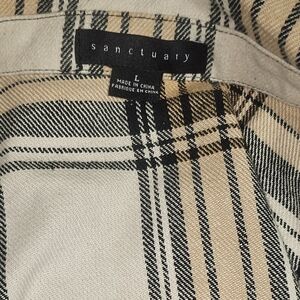 Sanctuary Plaid Shacket Anthropologie Neutral Tan Black Cream Large NWOT