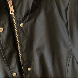 New Jason Wu parka coat. Size small. Black. Faux fur trim on hood. Button and zipper closure. Front button pockets.