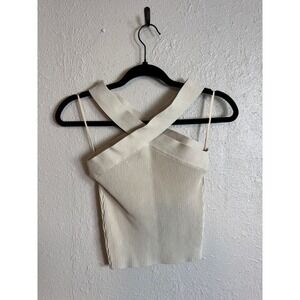 Aritzia Babaton Sculpt Knit Criss Cross Cropped Tank Oatmeal Small Clean Girl