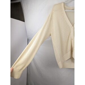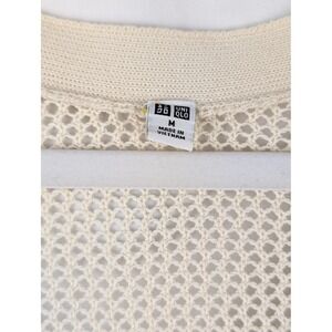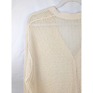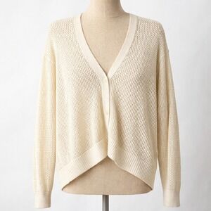 Uniqlo 100% Cotton Mesh Knit V Neck Cardigan Cream M Open Knit Boho Beach Layer