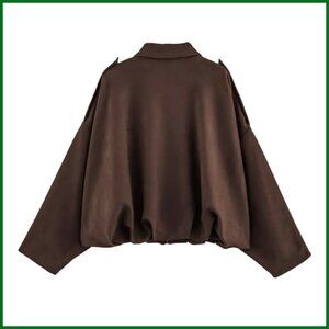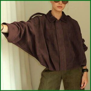 Faux Suede Bomber Jacket Lightweight Batwing Sleeve Oversized Coat