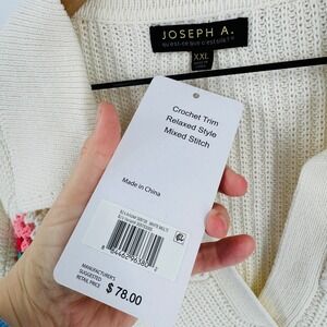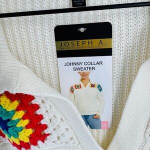 Joseph A. XXL Cream Johnny Collar Crochet Granny Square Sweater NWT Size XXL