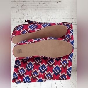 Gucci geometric pattern slip-on flats in blue and red. Made in Italy.