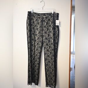 Absolutely stunning vintage Worthington black lace pants, brand new with tags! These elegant, sheer floral lace trousers feature a timeless straight-leg silhouette with delicate scalloped hems for a feminine, romantic finish.