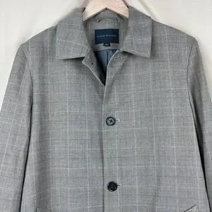 Banana Republic Mens Plaid Wool Blend Coat L Tailored Quiet Luxury Dark Academia