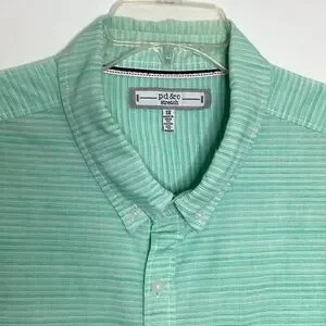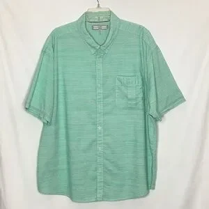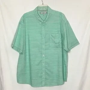 Freshen up your look with this light green button-down. Ideal for casual wear. Features a classic collar and short sleeves.