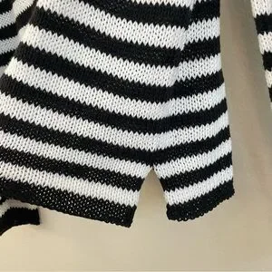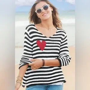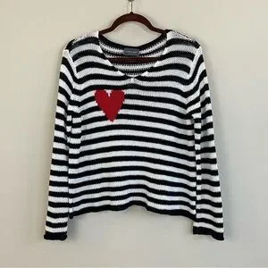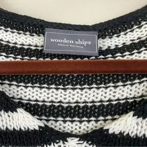 WOODEN SHIPS Eloise Heart V Neck Cotton Sweater Black and White Stripes Size S/M