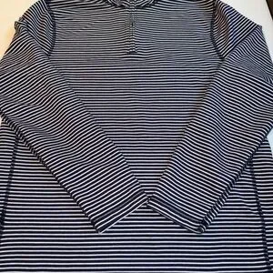Sz L J Crew Performance Pullover Mens Blue White Striped 1/4 Zip Active Golf