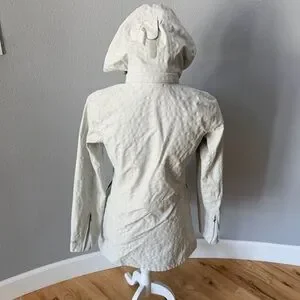 Elegant and functional weather proof jacket. Features a protective hood. Ideal for snowy rainy adventures.