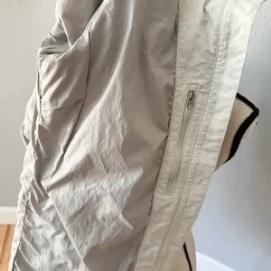 Pockets: Equipped with two zippered side pockets, an internal zippered chest pocket, and two additional internal buttoned pockets for secure storage.
