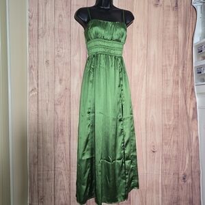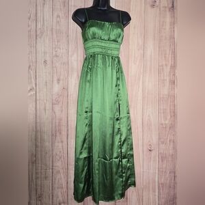 Abercrombie & Fitch Elegant Emerald Green Satin Maxi Dress Size XX Small
