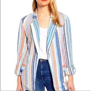 Caslon Linen Blazer Jacket sz M Striped Boyfriend Fit NEW