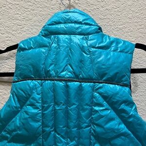 Navy blue side is in great condition. Other side has an ever so tiny rip that is not noticeable. Pictured up close.