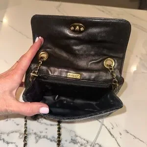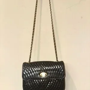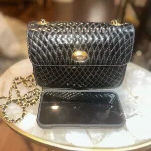 Vintage Bally Quilted Black Patent Mini Crossbody • Gold Chain • Made in Italy