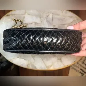 • Black quilted patent leather exterior