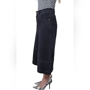 Tibi Black Denim Culottes Wide Leg Cropped Jeans High Rise Size 28
