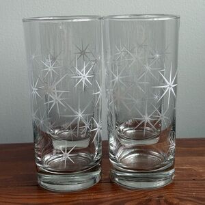4 Tall 50s Starburst Glasses Vintage Drinkware Atomic Space Age MCM Kitchen