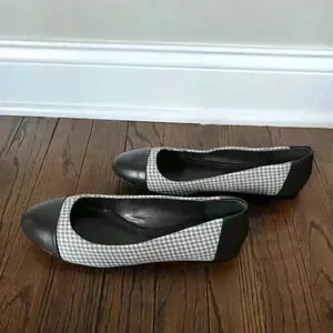 Details: Beautiful pair of flats from Brooks Brothers. This gray houndstooth design is coupled with a brown leather making for a polished looking shoe.