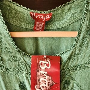 BRAJA Green Shirt with Embroidered Details and Tie Back - Handcrafted XL/XXL