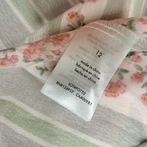 NWT WeWoreWhat Green Pink Floral Vertical Stripe Puff Sleeve Midi Dress Size 12
