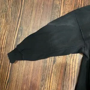 This Free People sweatshirt in size XS features a solid black knit fabric with beaded embellishments. It has a crew neck, long sleeves, and a relaxed fit, making it oversized. The sweatshirt is a pullover style, suitable for travel, activewear, and casual occasions. It has a bohemian, festival-inspired design. Perfect for winter, summer, and fall seasons.