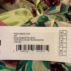 NWT SALONI- Pixie Dress- Silk Georgette in Canary Blossom. Size 2