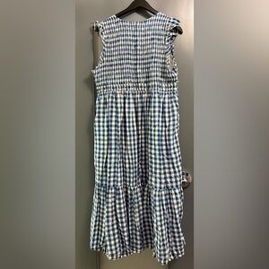 Anthropologie The Peregrine Midi Smocked Dress in blue gingham check