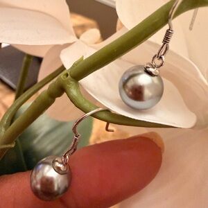 NWOT Authentic sterling silver and freshwater grey pearl drop earrings. Genuine 925 sterling silver hypoallergenic precious metal. The stem is stamped 925.