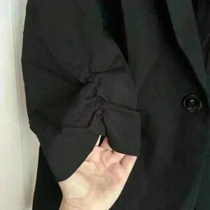 Excellent condition. Perfect for the office. Super cute dressed up or down. It is semi-stretchy and has adorable details including rouched 3/4 sleeves, buttons, and cute tailored details to hug your curves.