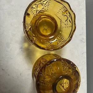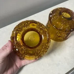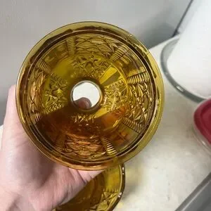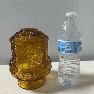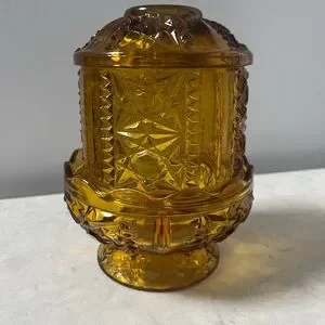 Beautiful amber glass fairy lamp with intricate patterns. Perfect for home decor.