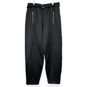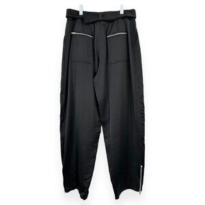 Saint Art Courtney Mid Rise Charmeuse Pant - Black Loose Fit Satin Cargo Pants