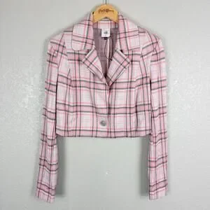 CAbi Playdate Crop Jacket + Pant Set Plaid Cheer Pink M Coquette Preppy Spring