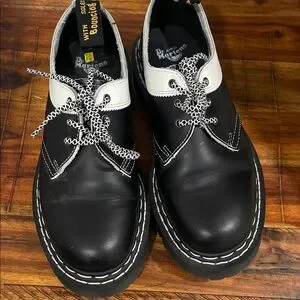 Dr Martens 1461 BEX SMOOTH CONTRAST LEATHER OXFORD BLACK WHITE SHOES 7 M / 8 W