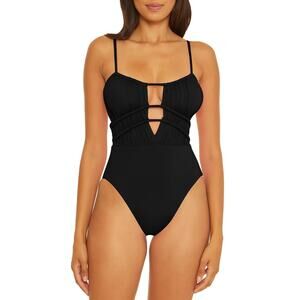 Becca Rebecca Virtue Color Code Sarai Black Plunge One Piece Swimsuit Size M