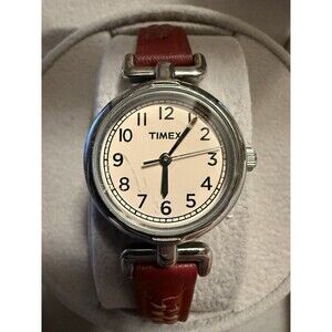 Timex Easy Reader Womens Quartz Watch Original Red Leather Band