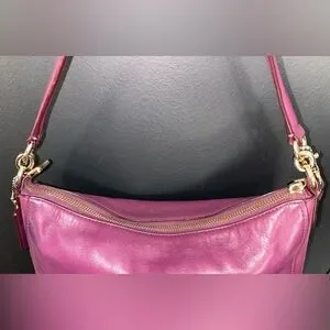 COACH leather handbag and shoulder bag in stylish Y2K purple color.Features a half-moon hobo design with original COACH hangtag.