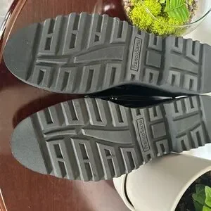 Experience the perfect blend of classic and contemporary with Franco Sarto's black and gray flats. These slip-on loafers feature a sleek black upper and a chunky platform sole, offering both style and comfort for any occasion. In perfect condition size 10W