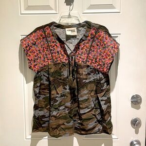Savanna Jane Embroidered Floral Army Camouflage Blouse Small, Pink Red Yellow