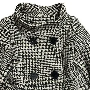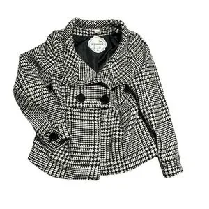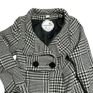 Nick & Mo Black White Houndstooth Peacoat Jacket Women's Medium Double Breasted