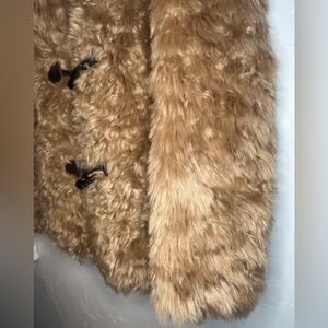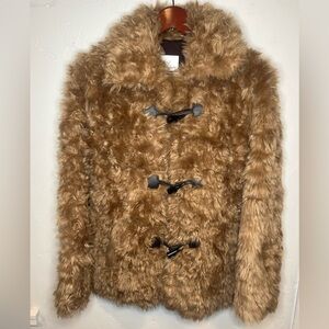 Cozy teddy jacket with plush faux fur. Features stylish toggle closures. Perfect for chilly days. In excellent condition. Marking on tag but otherwise flawless.