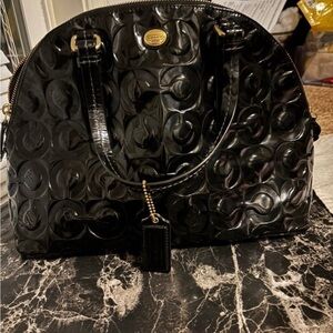 Coach Glossy Black Embossed Satchel