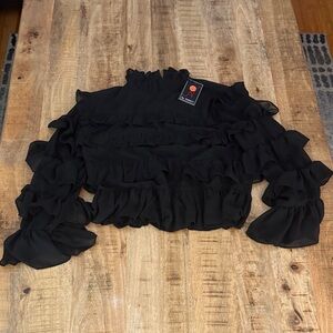 Elegant black ruffled top perfect for any occasion. Features a stylish design with layered ruffles for a chic look.
