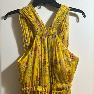 Unique jumpsuit by Alexis. Fully lined. The waist ties in the front giving the illusion of it being a skirt.